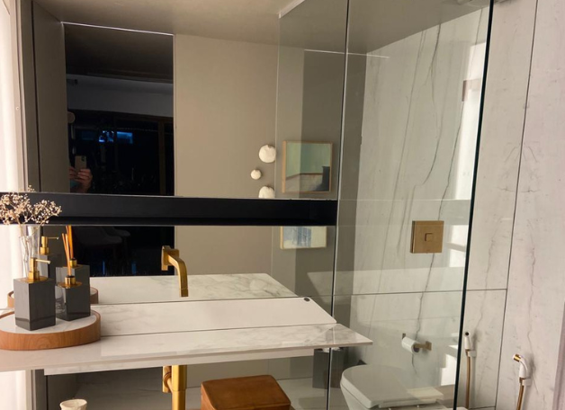 Box, espelhos e tampos sob medida que unem funcionalidade e sofisticação.